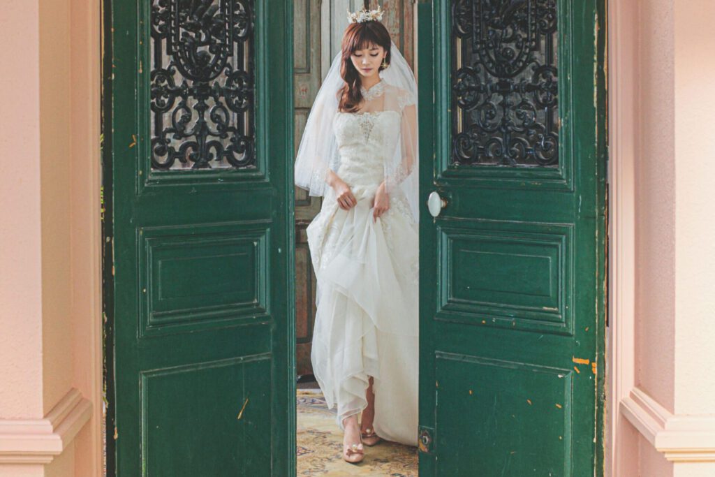 もともとのシンプルなままでも上品で大人っぽいシーンの撮影ができたり、小物で雰囲気を作れるのでアレンジの利きやすいドレスは韓国フォトウェディングを撮影されるお客様にはとても好まれます。