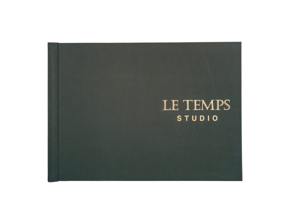 Point : 温かみのあるファブリック素材の表紙に高級感のあるStudio Le Temps(スタジオ ルタン)のロゴが入ります。厚みのある紙を採用し、お写真は色あせないインクジェットで印刷しています。