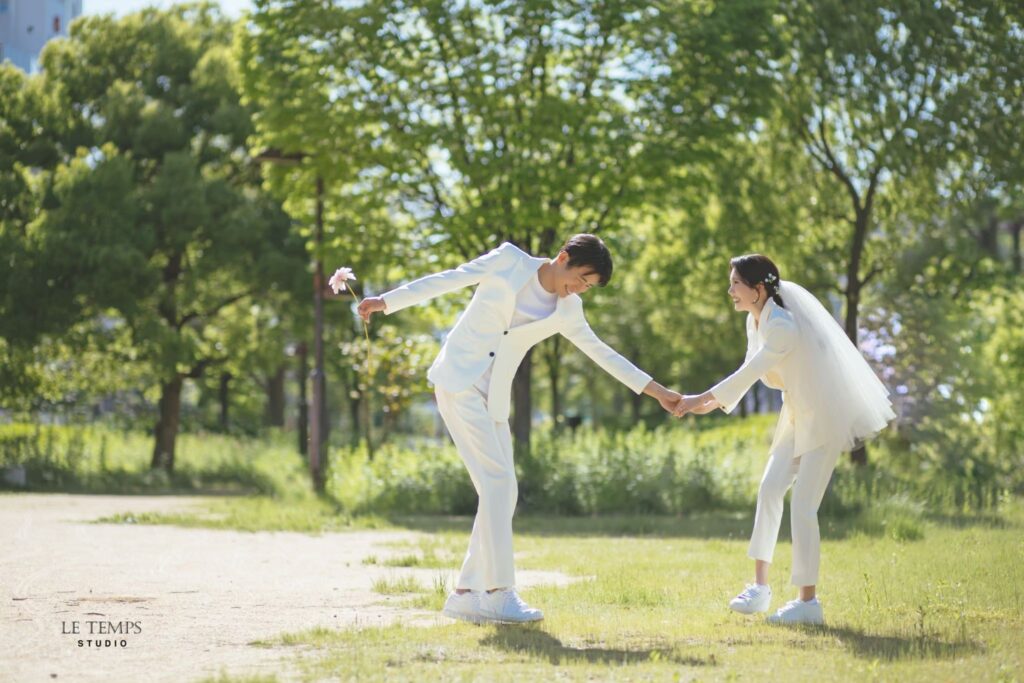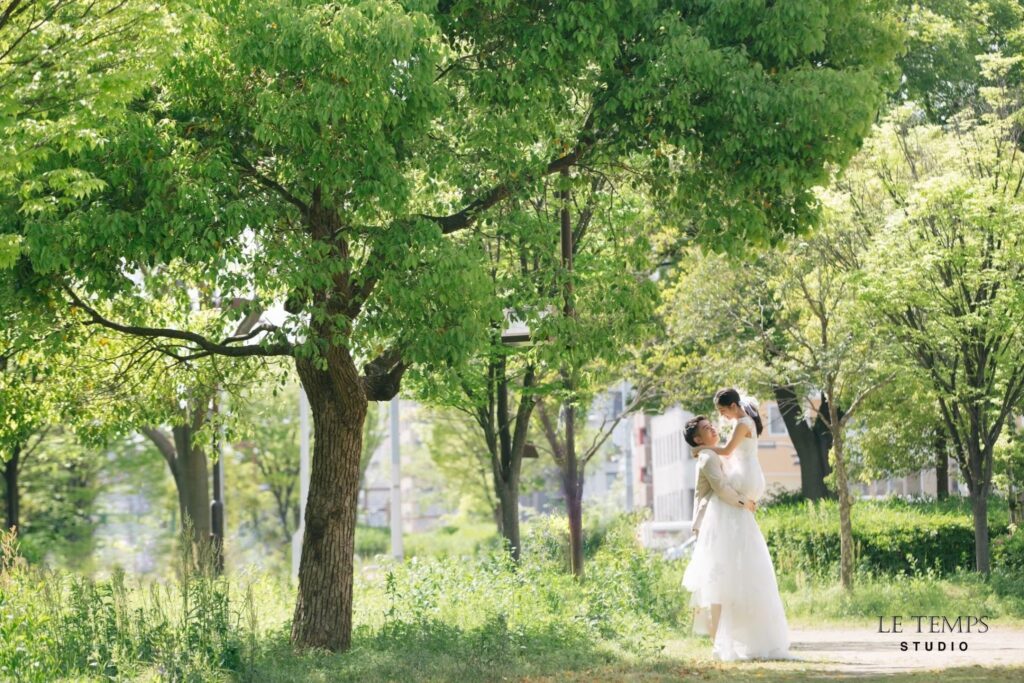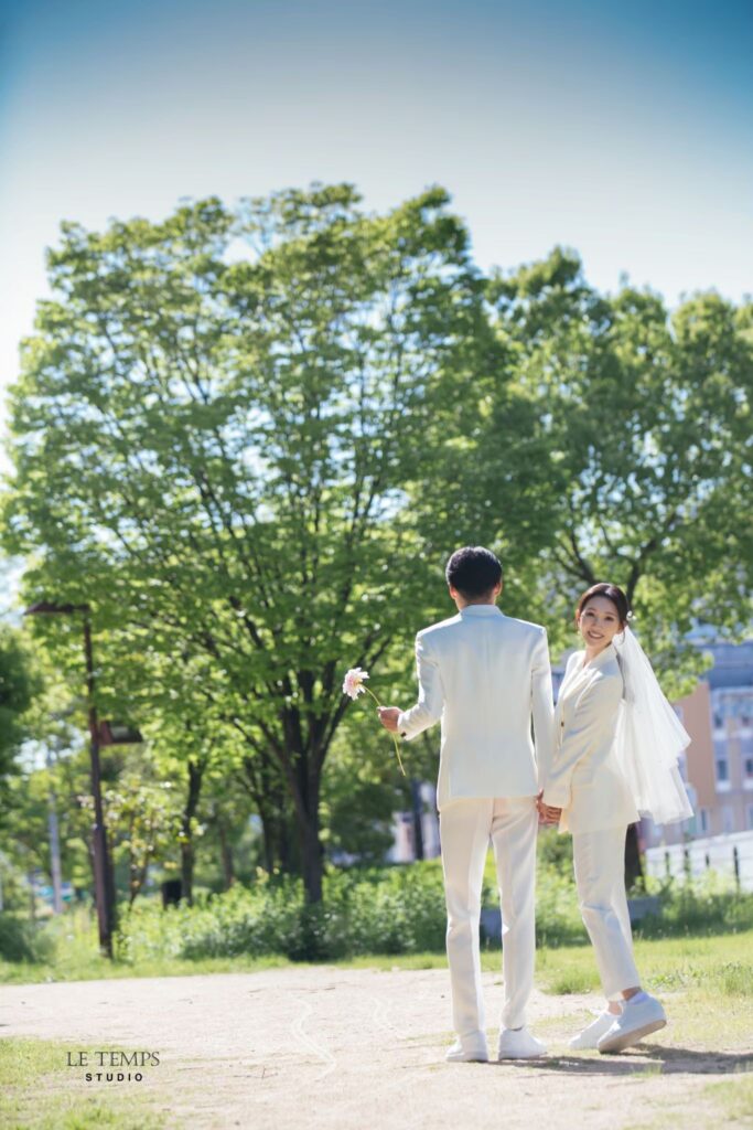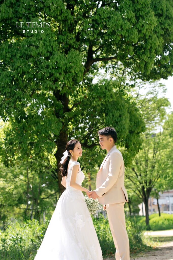 Studio Le Temps(スタジオ ルタン)で現在撮影可能なロケーション撮影は、緑地撮影とロード撮影です。スタジオ近くのエリアで、爽やかな野外撮影へご案内いたします。 自然光とそよ風を浴びて、普段の自分よりさらに輝く“等身大の私たちらしさ” を残せる撮影プランです。韓国フォトを全国のプレ花嫁様が求める今、注目の撮影スタイルです。